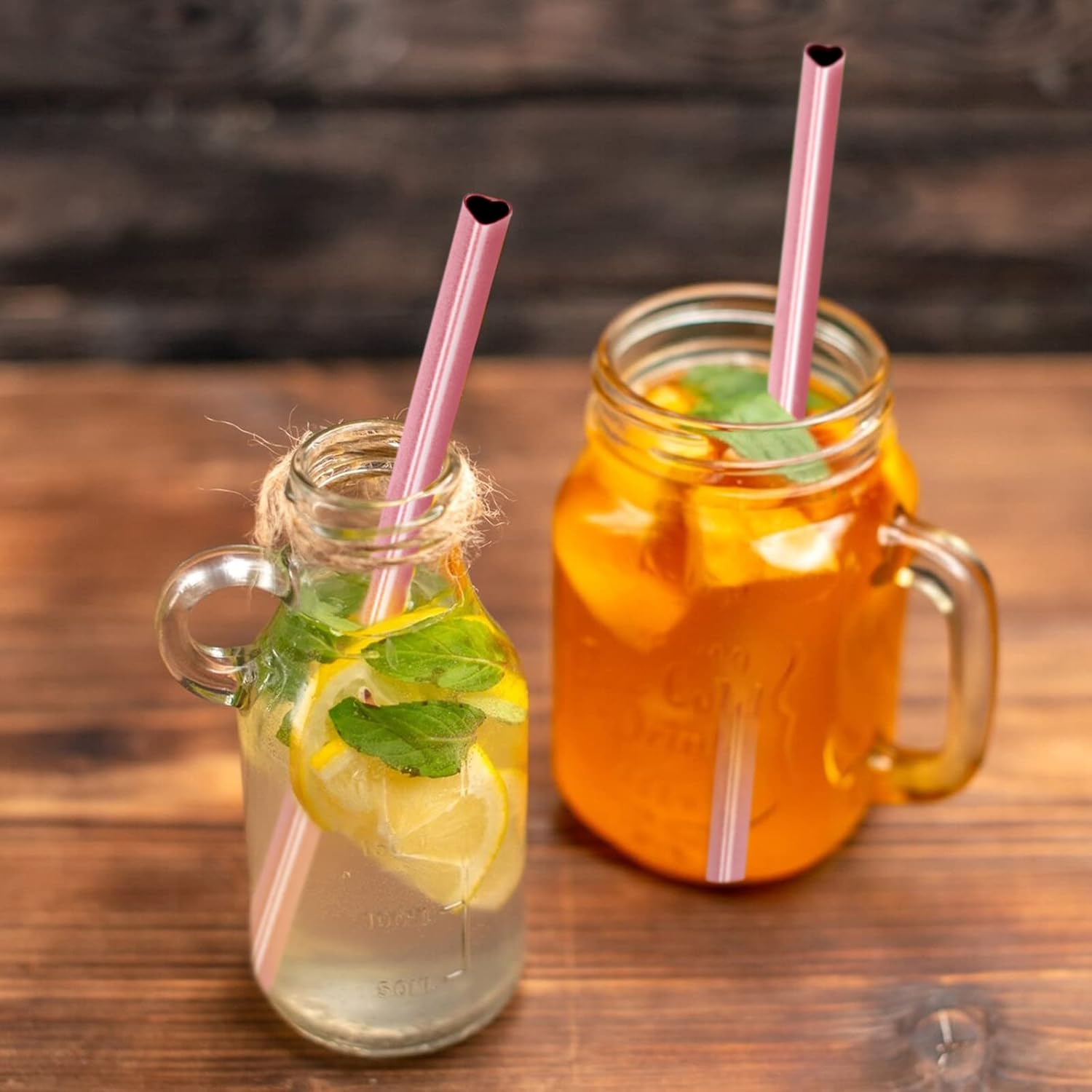 - đăHeart Shaped DesignăOur modern and sleek stainless straws will add fun to any drink. The pink pearl color heart-shaped stainless-steel straws make people happier and their mood more lovely and bright. Designed for a variety of uses, including stirring, drinking hot drinks, drinking cold drinks and more.