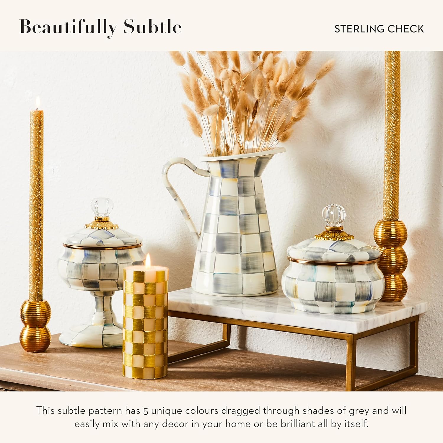 MACKENZIE-CHILDS Enamel Tea Kettle, Stylish Tea Kettle for Stovetop, Grey-and-White Sterling Check, 2 Quarts