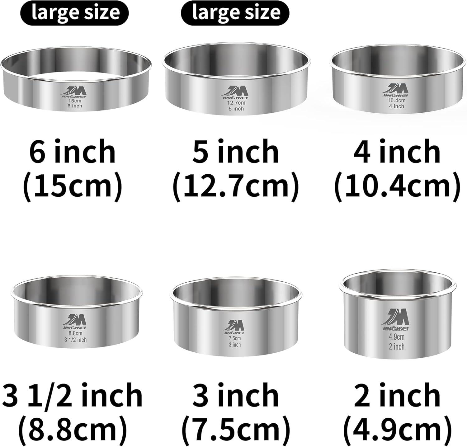 - ❀{6 pcs Round Cutter set }The large Cookie cutter set of 6 different sizes , Biscuit cutter set/round cake cutter sizes: Dia. 2inch(4.9cm), 3 inch(7.5cm), 3 1/2inch(8.8cm), 4inch(10.4cm),large size 5 inch(12.7cm), 6inch(15cm). Height: 1 1/4 inch (3 cm). Meet your different needs.