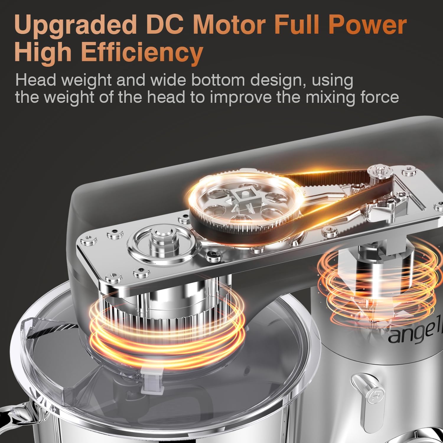 - ăUpgrated DC Motor System ăMini Angel stand mixers adopt all metal gear structure, with closed gearbox, effectively reduce the sound, speed running stable without stalling with can long service life. And the planetary mixing system which functions more touch points per rotation during mixing process, so that all the mix is stirred at a full extent.