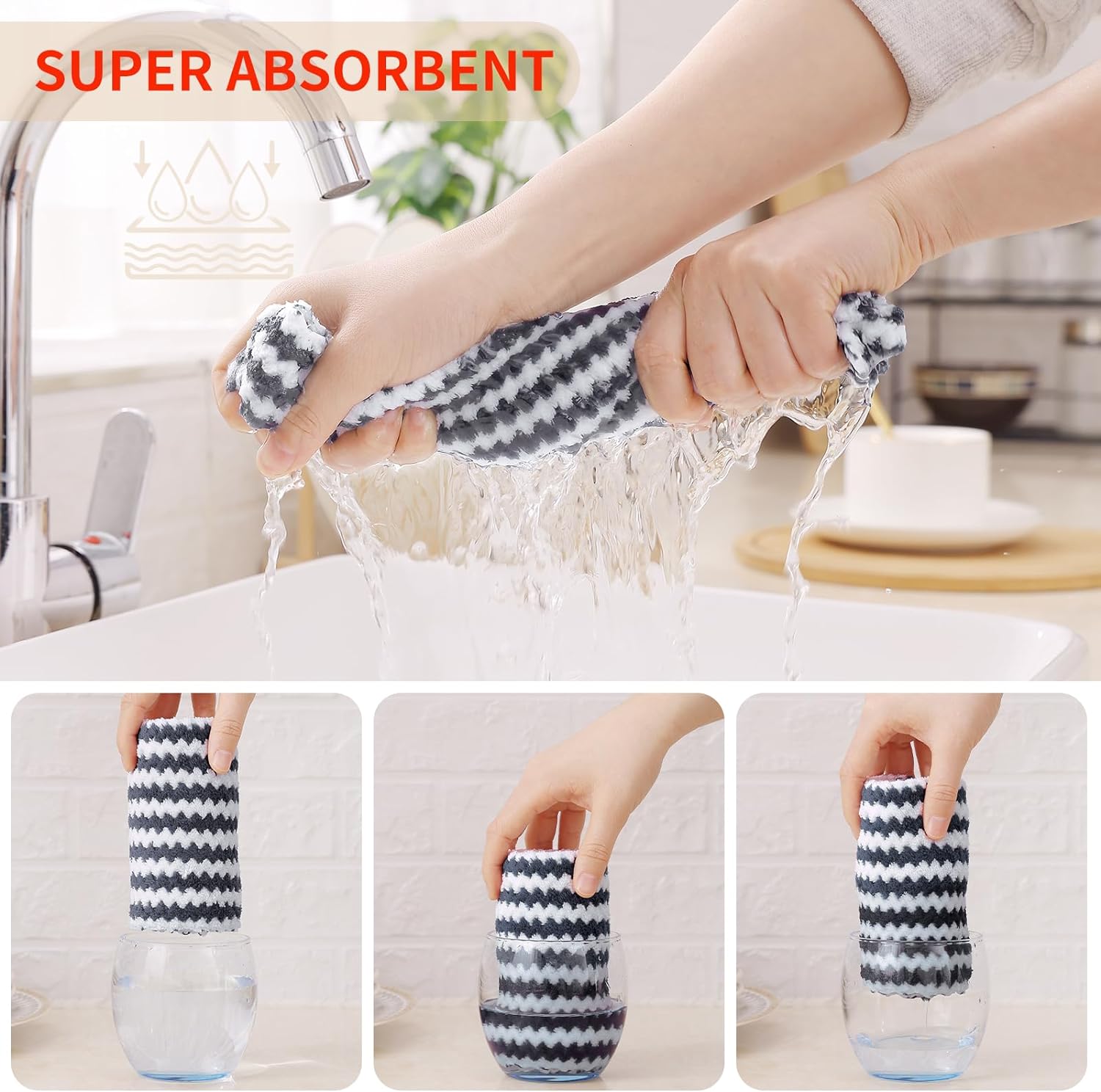 Homaxy 12 Pack Kitchen Dish Cloths, Ultra Soft and Absorbent Dish Towels, Reusable Fast Drying Microfiber Cleaning Cloth, Coral Velvet Wave Design No-lint, 10 x 10 inches, Dark Grey