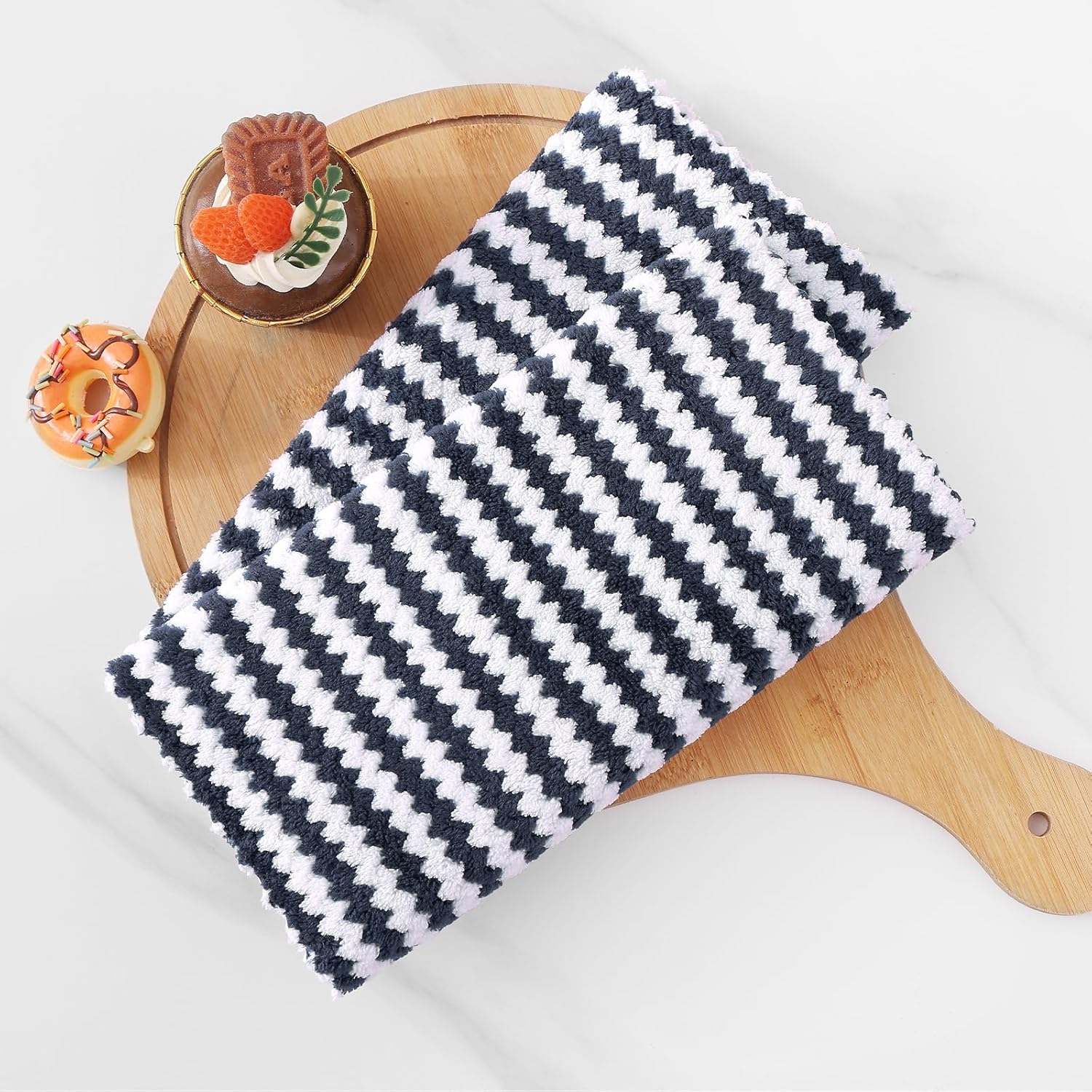 Homaxy Kitchen Towels(12 Pack, 10 x 20 inches), Ultra Soft and Absorbent Dish Towels, Reusable Fast Drying Microfiber Cleaning Cloth, Coral Velvet Wave Design No-lint, Dark Grey