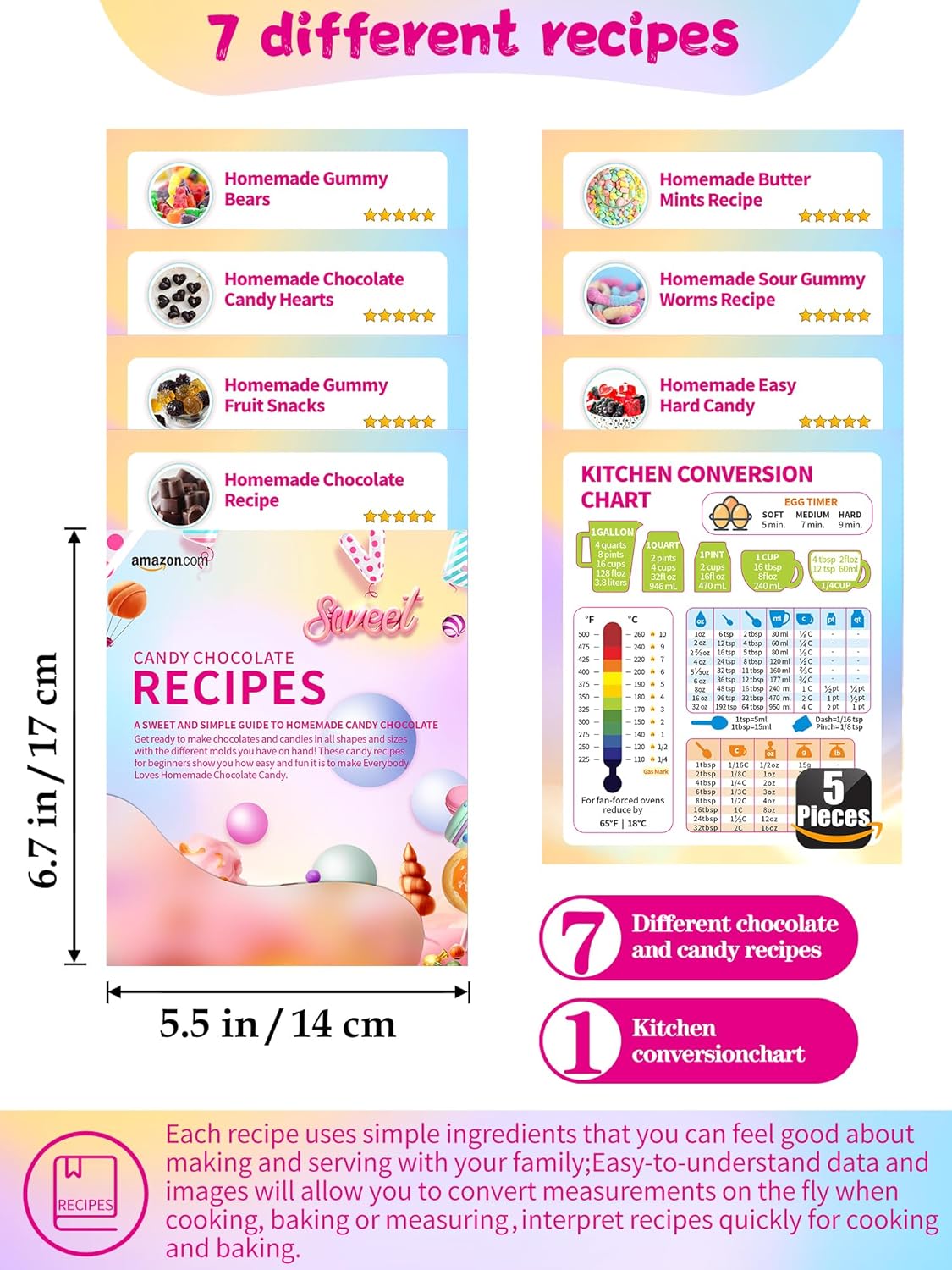 - 📚 "7 Creative Recipe Cards Included – From Gummy Bears to Chocolate Lollipops, Step-by-Step Guides Make Candy-Making Fun and Easy for All Ages!"