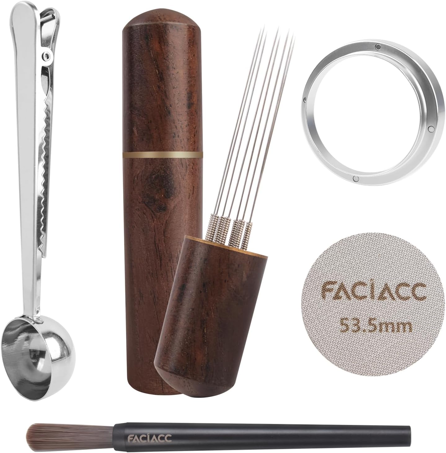 - 【Complete Espresso Tool Set】Elevate your espresso-making experience with this espresso tool set. It includes five essential components - the espresso wdt tool, espresso dosing funnel, espresso puck screen, 2 in 1 coffee bag clip & coffee spoon, and Coffee cleaning brush - to simplify, enhance, and perfect your brewing process.
