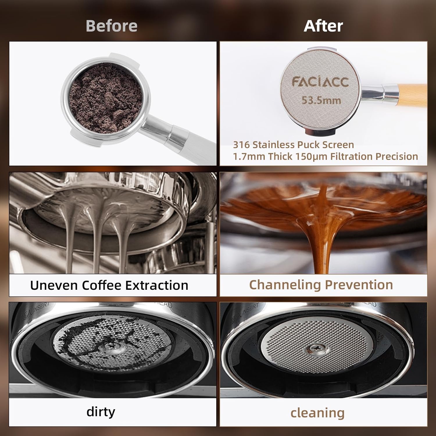 - 【Reusable Puck Screen】Enhance the flavor and quality of your espresso while protecting your machine from clogs with our espresso puck screen. Experience a uniform coffee extraction as the screen creates a smooth and even surface. Say goodbye to any potential blockage in your machine's filter basket caused by coffee grounds.