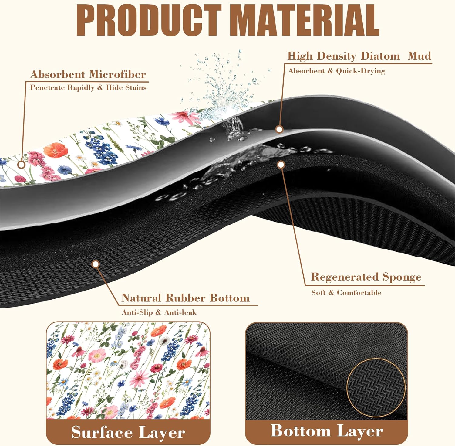Watercolor Flowers Coffee Mat Absorbent Dish Drying Mat for Kitchen Counter Hide Stain Rubber Backed Coffee Bar Accessories Fit Under Espresso Machine Dish Rack 11.8 x 19.7 Inch