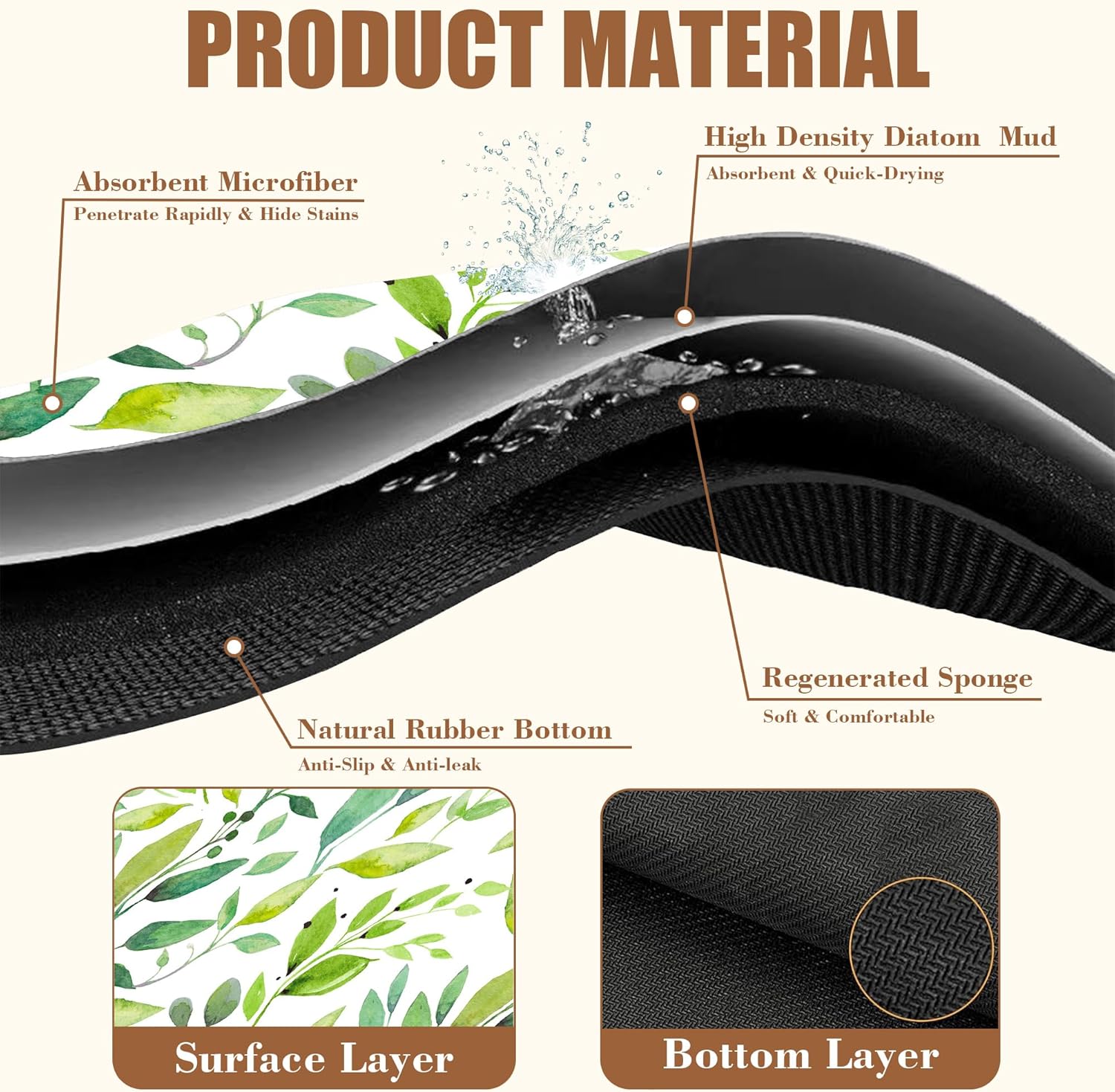 Dish Drying Mat Watercolor Green Leaves Coffee Bar Mat for Countertop Absorbent Hide Stain Rubber Backed Dish Drainer Rack Pad Espresso Machine Cafe Table Decor 11.8 x 19.7 Inch