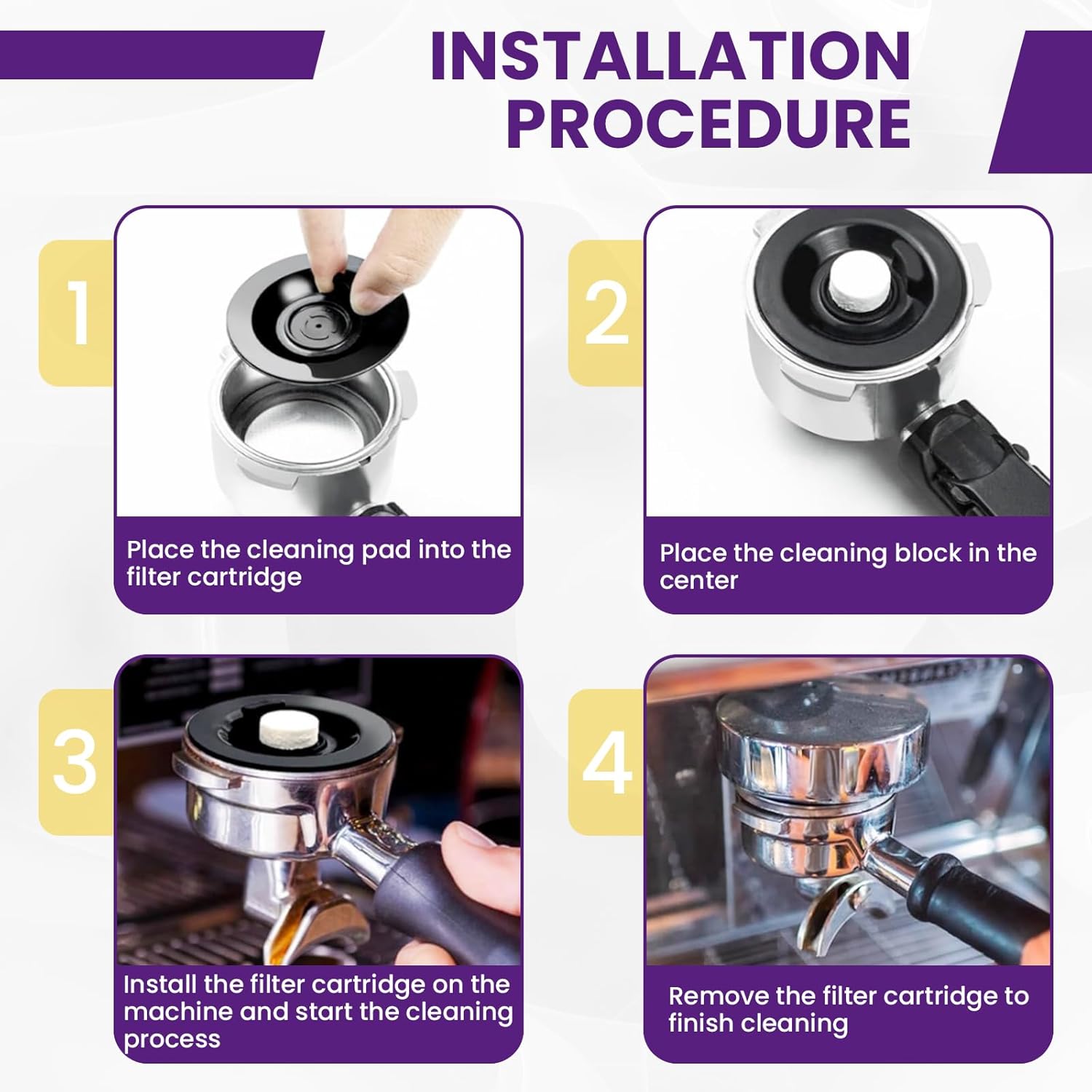 - ๐๐๐ฌ๐ฒ ๐๐ง๐ฌ๐ญ๐๐ฅ๐ฅ๐๐ญ๐ข๐จ๐ง: The 54mm backflush disc is easy to install. Simply remove the metal coffee filter from the espresso handle, place the blind disk inside, add the cleaning agent, reattach the handle, and then turn on the coffee machine's extraction button to clean the valve system