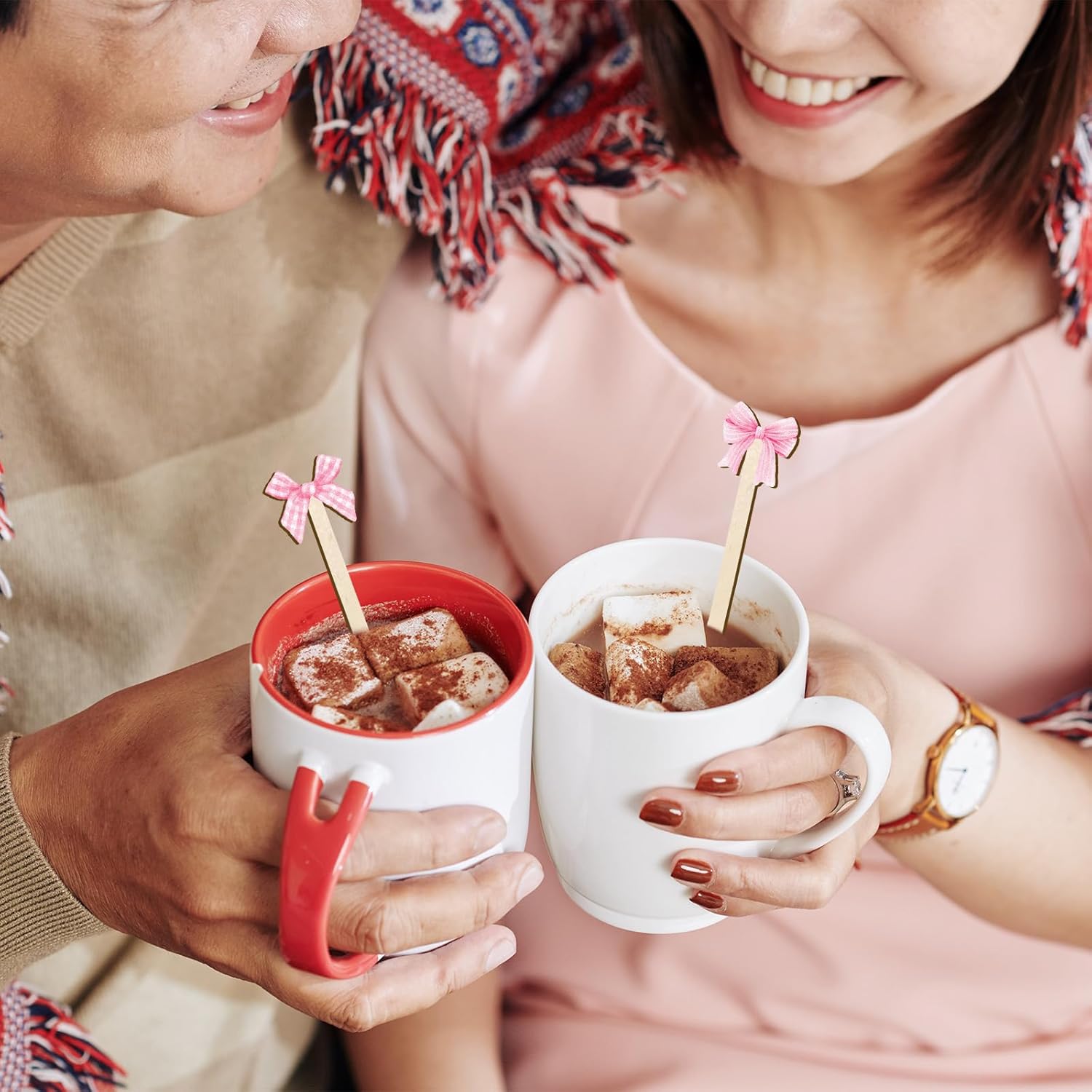 - PROPER SIZE: The pink bow drink stirrers are about 5.9 x 1.2 inch, appropriate for most small coffee cups, allowing you to stir your favorite coffee, tea, water, milk, hot chocolate or other drinks comfortably