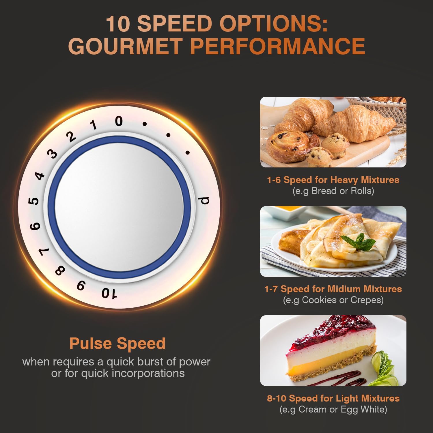 Mini Angel Stand Mixer,10-Speed Kitchen Electric Mixer,Tilt-Head Food Mixer with Dough Hook, Wire Whisk, Flat Beater, Stainless Steel Bowl (Blue2, 5QT)