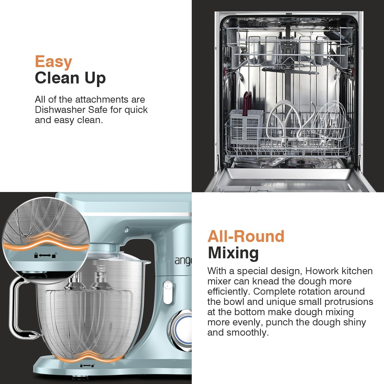 - ăSolve the Trouble, Save your Time, Release your HandăMini Angel mixer helps you make snacks, bread, pizza, desserts, cake fast and conveniently, and it covers more than 90% of the kitchen needs. Beat egg whites, whole eggs, whipped cream, butter, kneading dough, and make all kinds of dishes that need to be stirred, such as minced meat, mashed potatoes, etc.