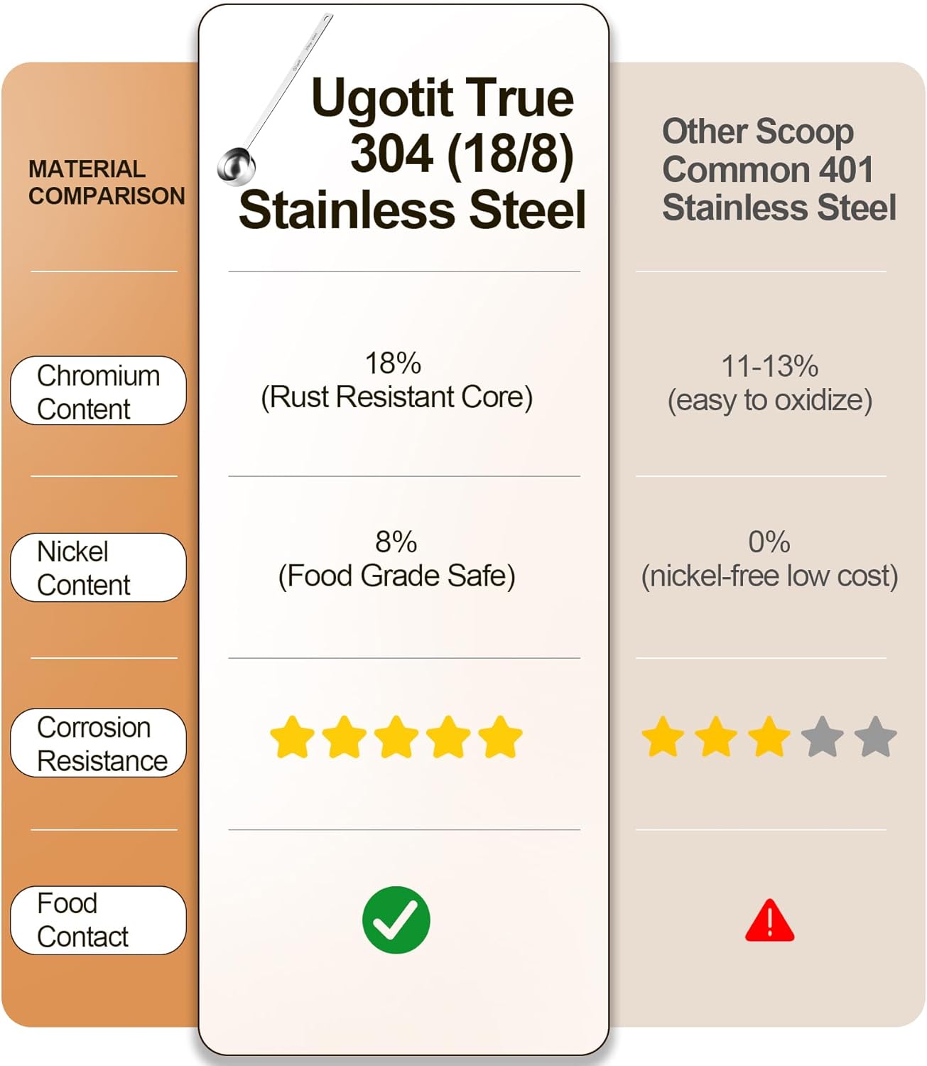 - 【Sturdy and Durable】-Reinforced 304 stainless steel coffee scoop (2.3mm/0.1inch handle) won’t bend. Rust-proof for longevity.