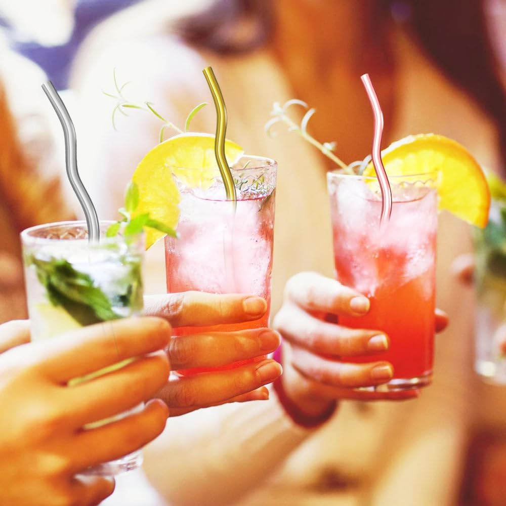 - 【Scope of Application】Stainless steel wave straws are not only beautifully shaped,but also widely used.Whether it is fruit juice,coffee,milk tea or cocktails,they can be easily adapted to meet the needs of different daily drinks and scenes.