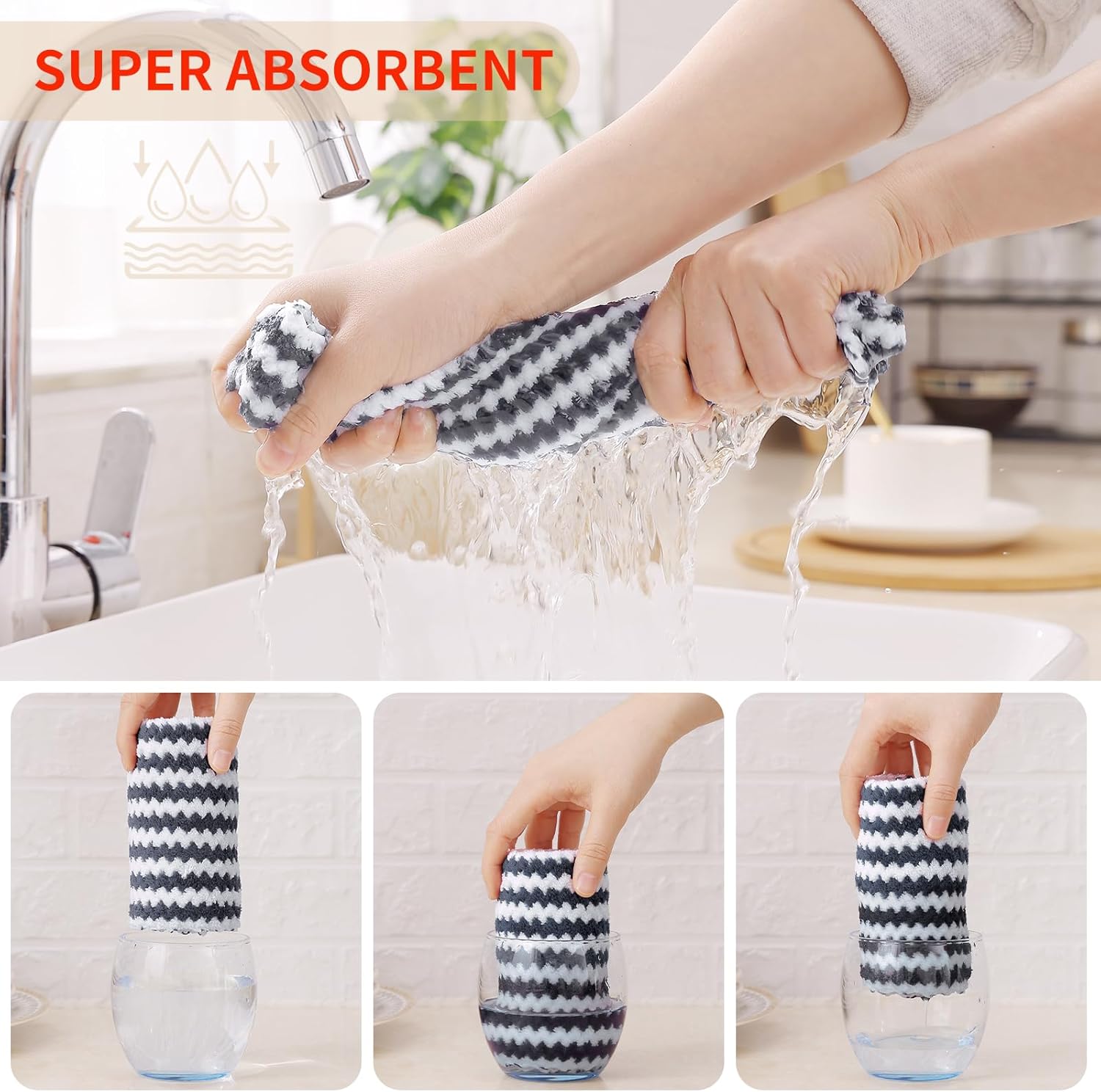 Homaxy 18 Pack Kitchen Dish Cloths, Ultra Soft and Absorbent Dish Towels, Reusable Fast Drying Microfiber Cleaning Cloth, Coral Velvet Wave Design No-lint, 10 x 10 inches, Dark Grey